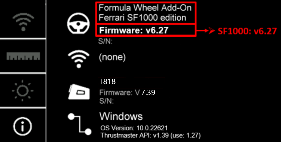 6. Check the firmware version on your Formula Wheel Add-On Ferrari SF1000 Edition