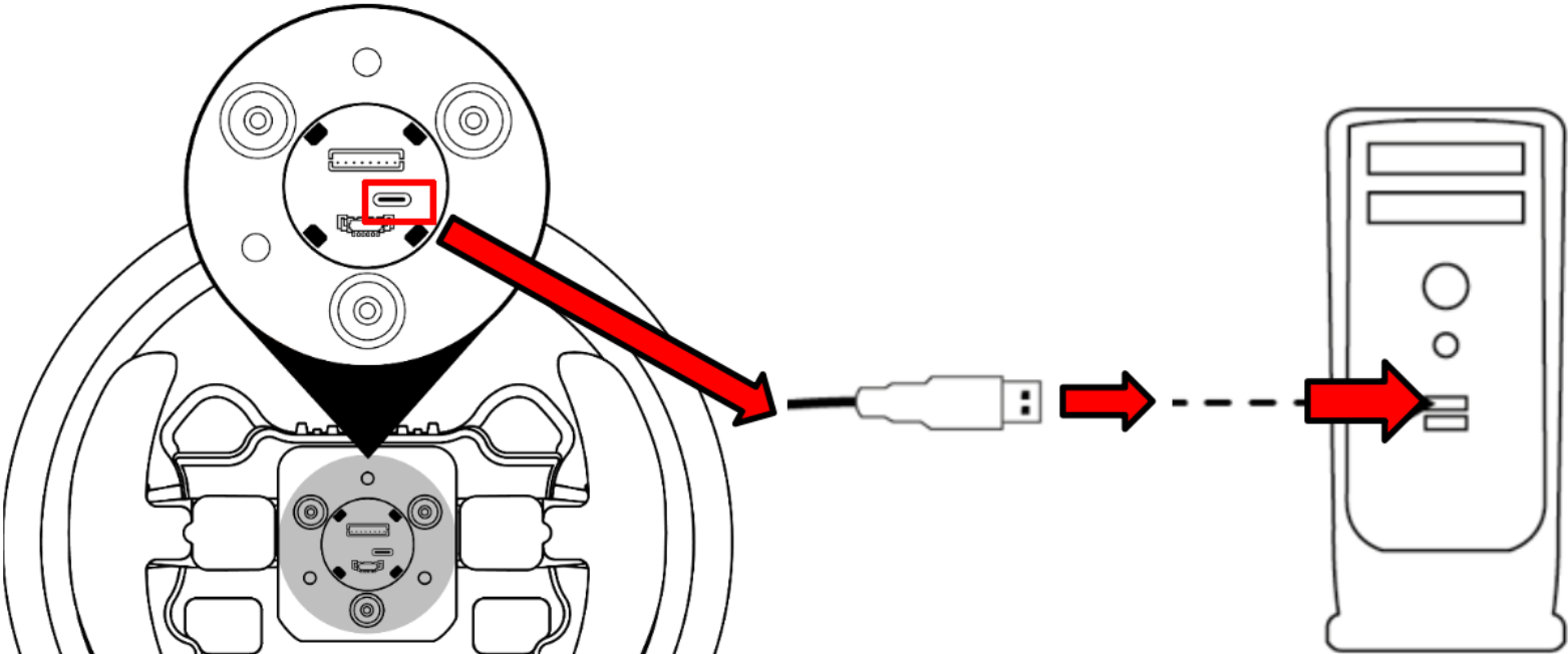 Connect your wheel add-on to the PC using its USB‑C / USB‑A cable, wait a few seconds, and open My Thrustmaster Panel.