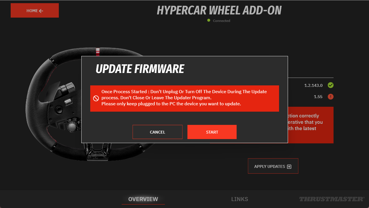 If you are using a Thrustmaster FFB racing wheel base, please refer to this other article: Help Center – Racing Wheels: How do I update my Thrustmaster racing wheel (racing wheel bases, wheel add-ons, applications, drivers)?