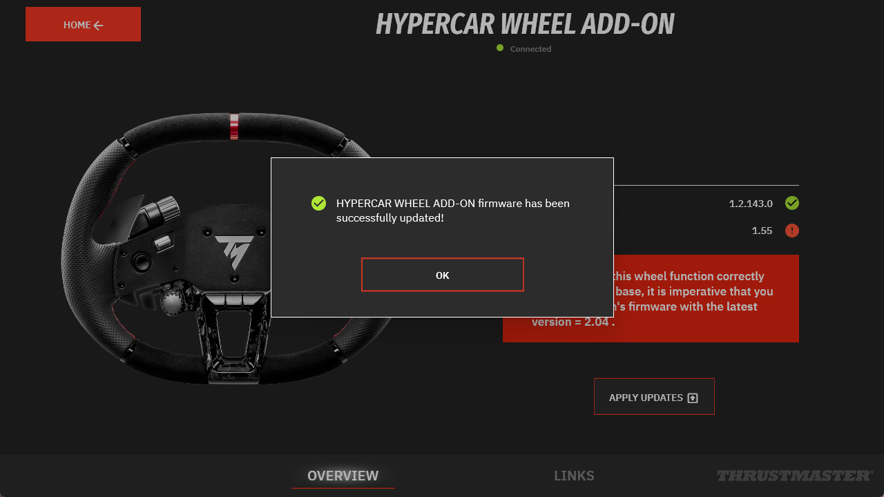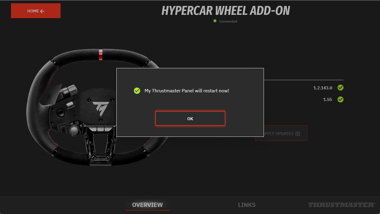 * If the icon appears without this message, your wheel add-on is already up to date. You can close My Thrustmaster Panel.