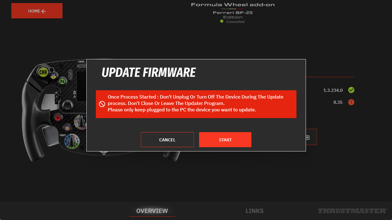 This article explains how to update the firmware of the Formula Wheel Add-On Ferrari SF-25 Edition.