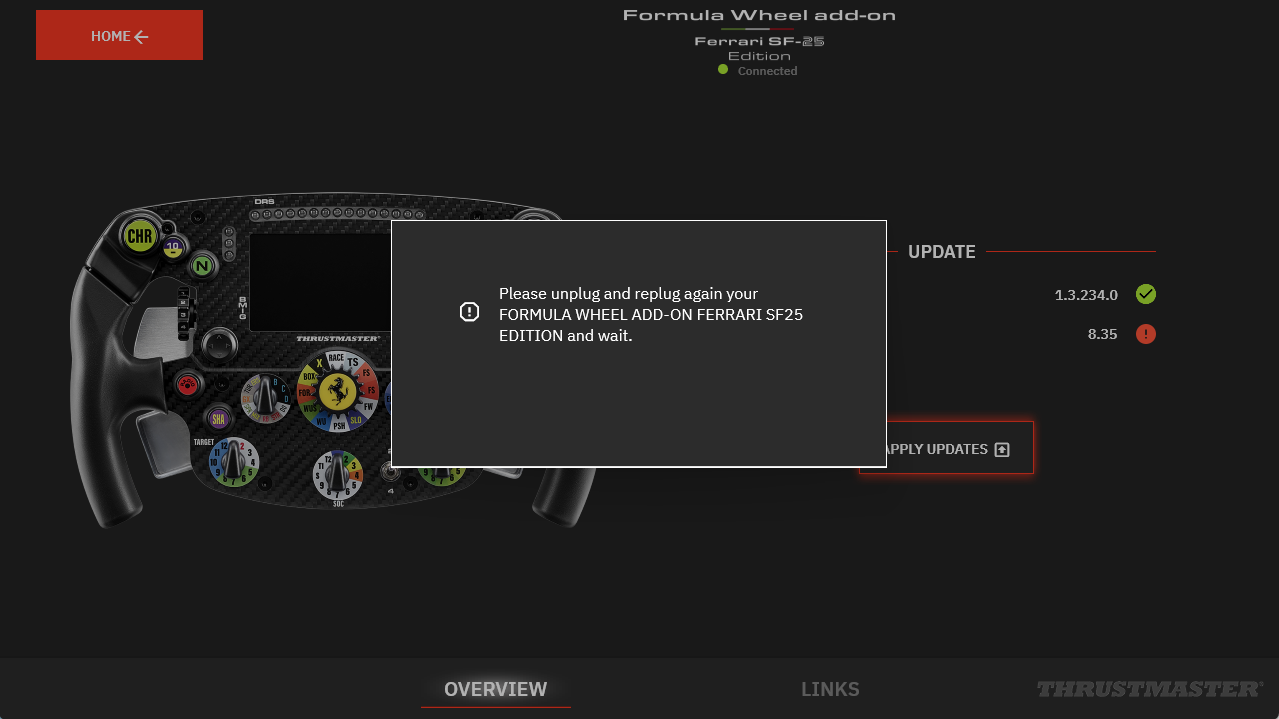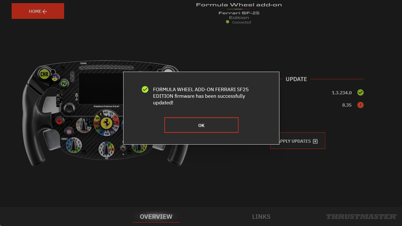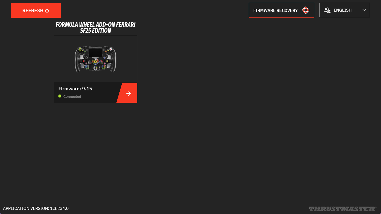 Important: You must update both the Ferrari SF-25 (firmware v9.15) and your Direct Drive wheel base (T598, T818): Direct Drive wheel base update |