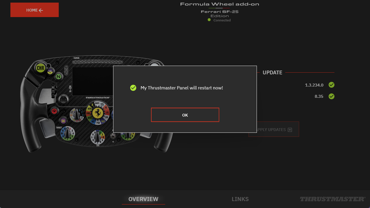 * If the icon appears without this message, your wheel add-on is already up to date. You can close My Thrustmaster Panel.