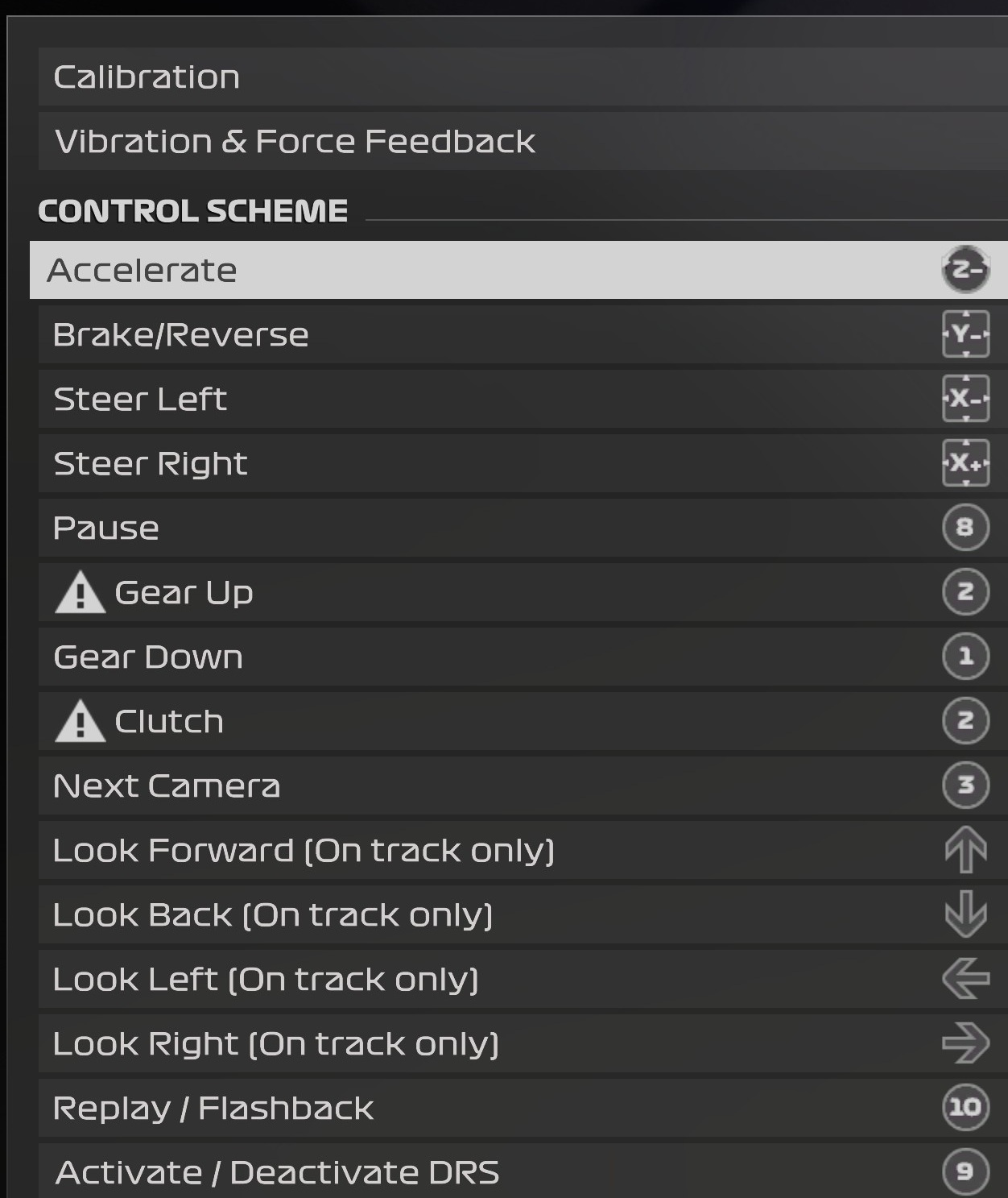 This mapping method also serves as an example for the series of F1® (Formula 1) games, from F1® 2015 to F1® 24, in their PC versions.