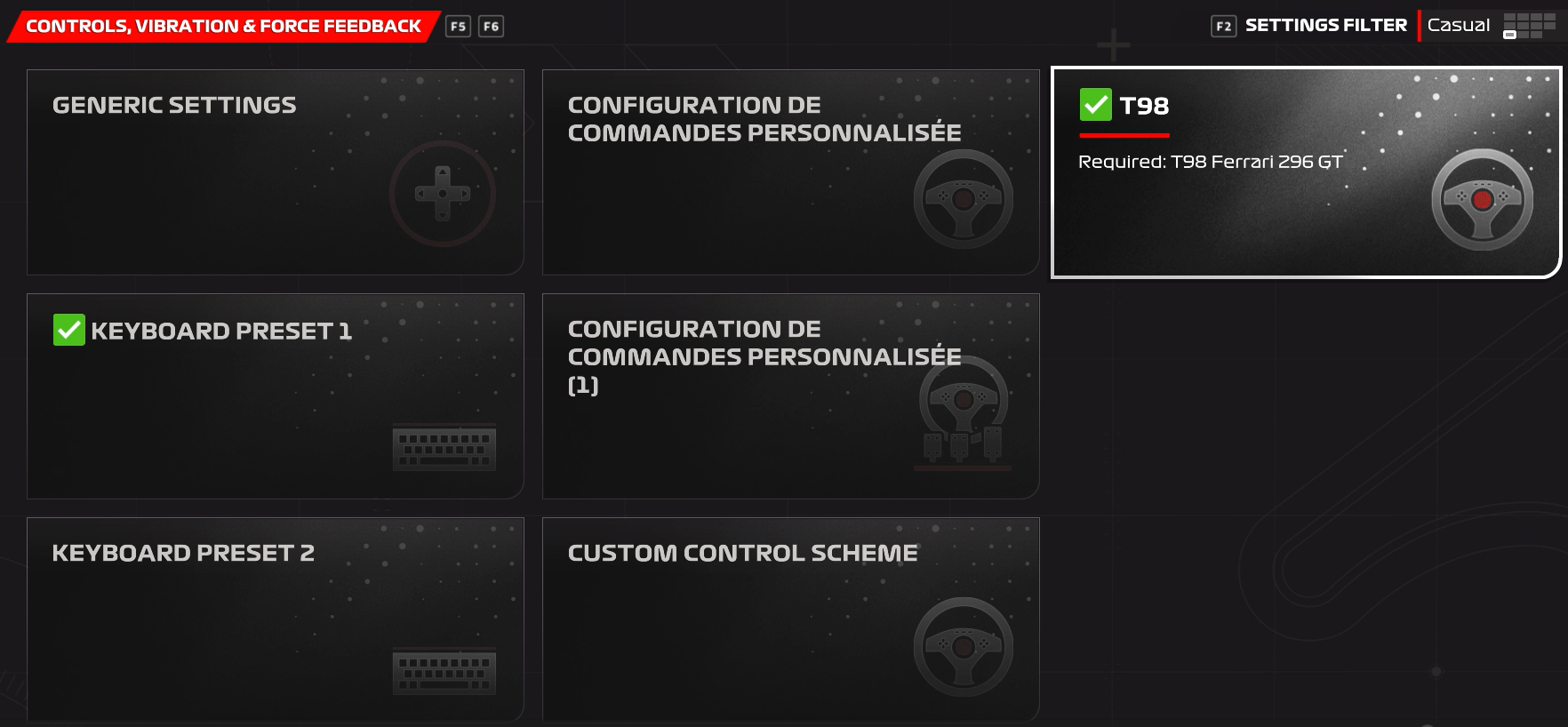 - F1® (PC version) Mapping T98 Ferrari 296 GTS (Xbox One/XBox Series/PC)